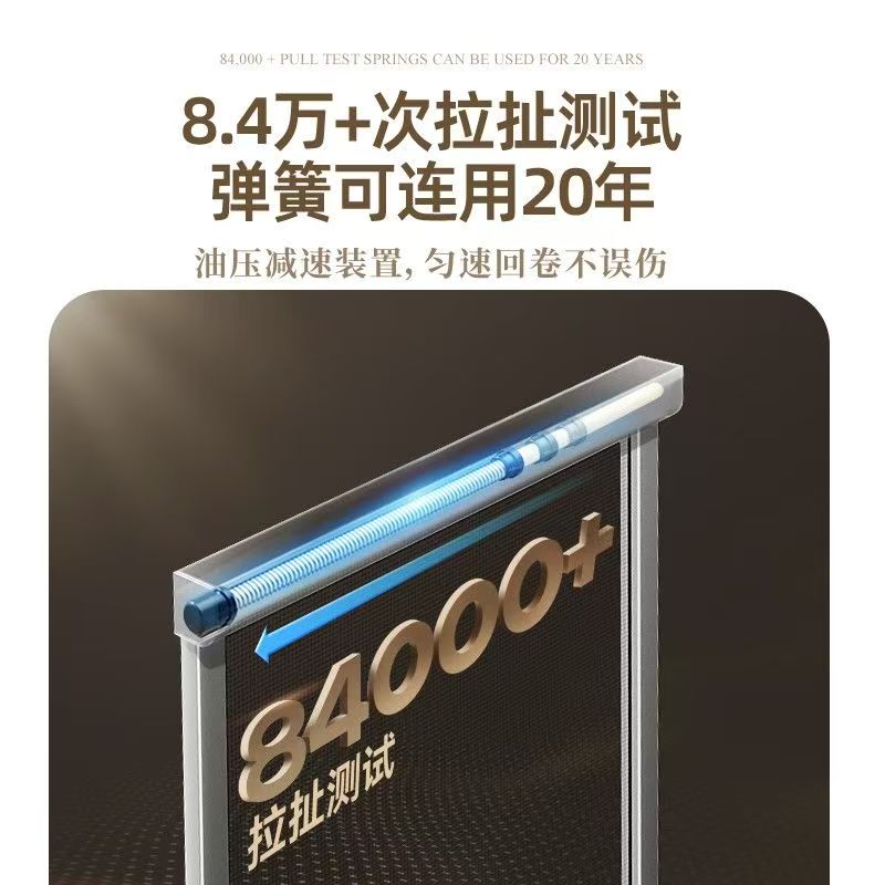 这是一款自带缓冲阻尼的纱窗,拥有三大专利,航空加厚铝型材6063T5,型材壁厚1.4,进口弹簧质保五万次拉伸,配置双向毛刷自清洁功能,阿克苏进口粉末,搭配进口无碱玻纤网(选配进口48目PET抑菌网),抗暴晒耐老化,抗风压10级。